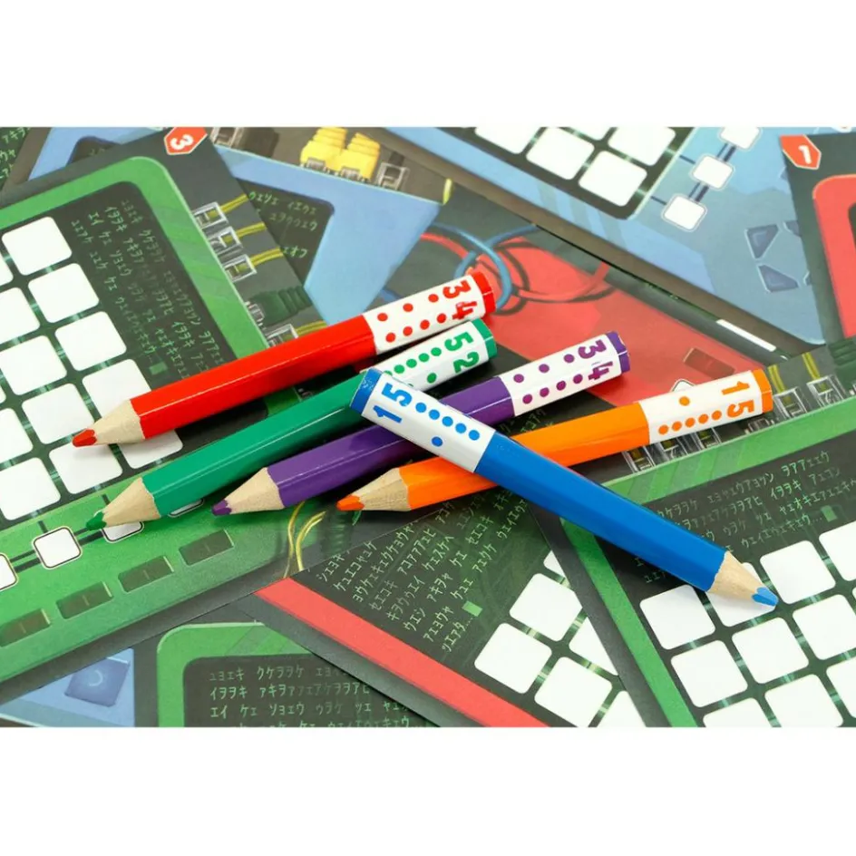 Pick a Pen: Hackers van 999 Games is een uitdagend dobbelspel dat strategisch denken vereist, geschikt voor alle leeftijden en ervaringsniveaus. In dit spannende spel combineren spelers puzzelen met tactiek door kleurpotloden te kiezen en cijfers in hun scorevel in te vullen. Met scorevellen op drie verschillende niveaus biedt het spel variatie en uitdaging voor zowel beginners als ervaren spelers. Maak slimme keuzes en verzamel punten op diverse manieren om als winnaar uit de bus te komen. Een perfecte mix van strategie en plezier voor het hele gezin.