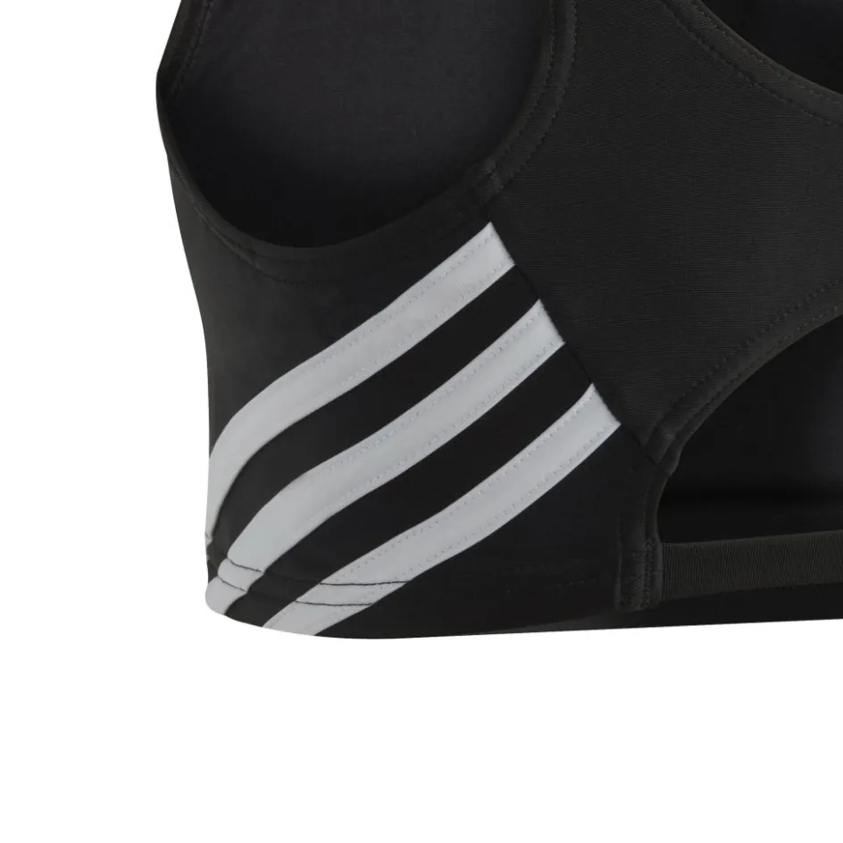 De adidas 3-Stripes bikini voor kinderen is chloorbestendig en het iconische 3 strepen design van adidas valt goed op. De bikini heeft een H-rug model en het model voelt zacht aan. De bikini zit de hele zwempartij comfortabel en is gemaakt van gerecycled materiaal.