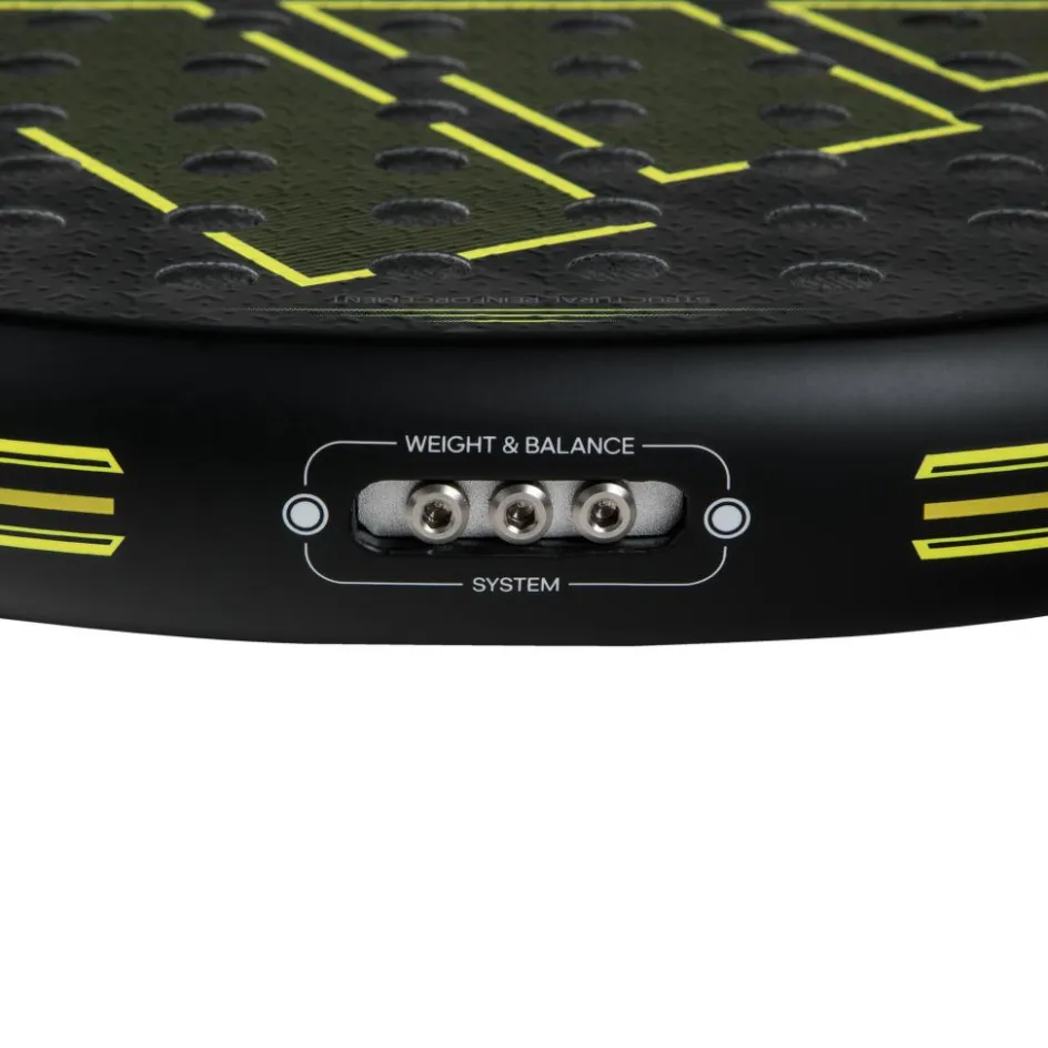 Het adidas Adipower Multiweight 3.3 padel racket heeft een sterk frame dankzij de carbon structuur in de kern. Het padel racket heeft een fijne balans en gewicht die eventueel aangepast kan worden tot 9 gram. Aan de zijkant van het padel racket kunnen er totaal 7 schroeven verdeeld worden om het racket op uw voorkeur aan te passen. Met dit racket kunt u krachtige slagen maken en de bal een spineffect geven.