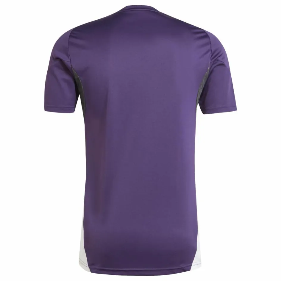 Dit adidas Manchester United Tiro 25 voetbalshirt is geïnspireerd op de kleuren van het uittenue. Spelers dragen dit shirt tijdens de voorbereiding op een wedstrijd. Het is gemaakt van zacht interlock materiaal, dat behandeld is met de AEROREADY technologie waardoor het shirt een vochtregulerende eigenschap heeft en een hoog draagcomfort biedt. Hierdoor is het shirt perfect om in te trainen.