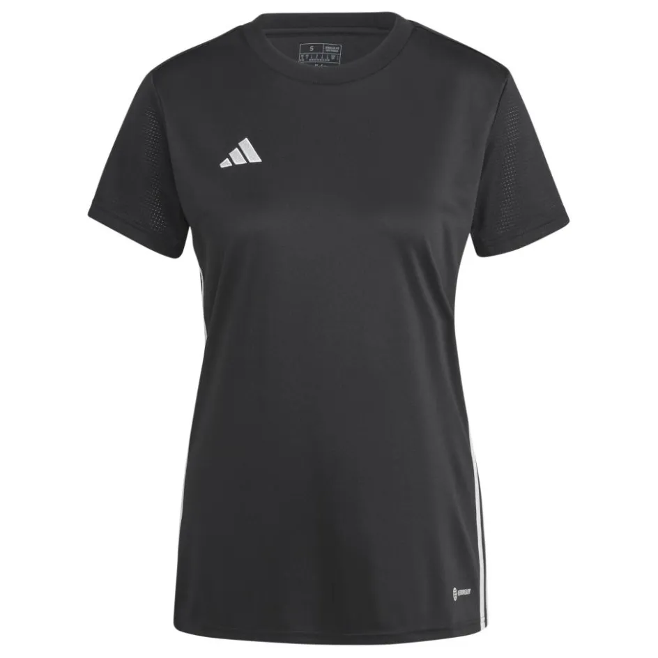 Het adidas Tabela voetbalshirt voor dames biedt een stijlvolle uitstraling tijdens het sporten. Dit voetbalshirt heeft het adidas-logo op de rechterborst en is voorzien van het iconische 3-Stripes design langs de zijkanten. Het is gemaakt van sneldrogende, gerecyclede materialen en heeft een normale pasvorm met voldoende bewegingsvrijheid.