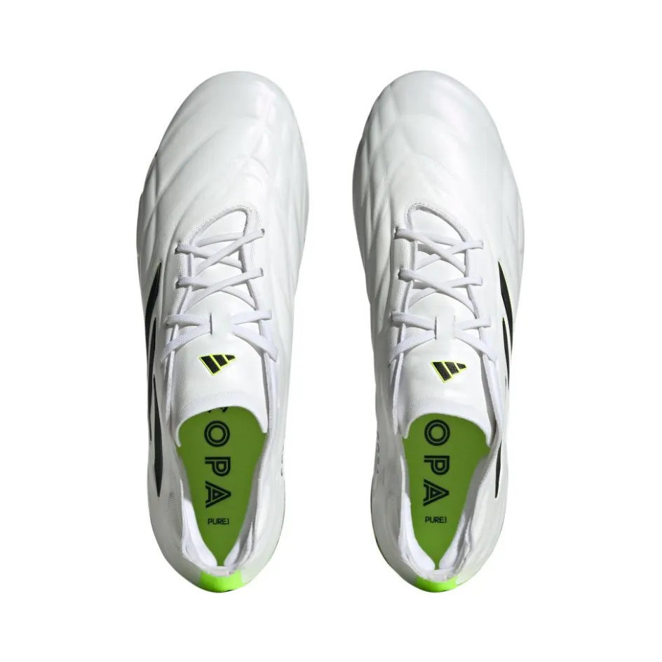 De adidas Copa Pure.1 FG voetbalschoenen voor heren hebben een iconische look die goed opvalt. Deze schoenen bieden een fijne pasvorm en zitten de hele wedstrijd comfortabel. Met de gespecialiseerde buitenzool heeft u perfect grip op droog gras. Hierdoor kunt u zich goed afzetten voor een sprint. Deze schoenen zijn voor minstens 50% gemaakt van gerecycled materiaal.