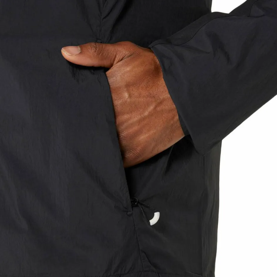 Dit ASICS Road Packable hardloopjack voor heren is een ideaal jack voor de winderige en regenachtige dagen. Het materiaal is waterafstotend en windbestendig. Is het weer goed? Dan kan het jack in zijn geheel worden opgeborgen in de zijzak met rits. Op de achterkant van de capuchon zit een koord om de capuchon goed vast te kunnen zetten. Ook onderaan het jack zit een elastisch koord om het jack te fixeren. Bij de oksels en de nek zijn ventilatiezones geplaatst. Voor een verbeterde zichtbaarheid in het donker zijn reflecterende details aanwezig op de voor- en achterkant.