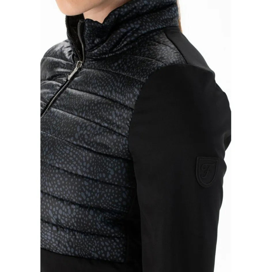 De voorkant van het Celia trainingsjack van Falcon is gevoerd en heeft een print. Het materiaal van het vest is rekbaar en rondom de taille zit een trekkoord voor een betere pasvorm.