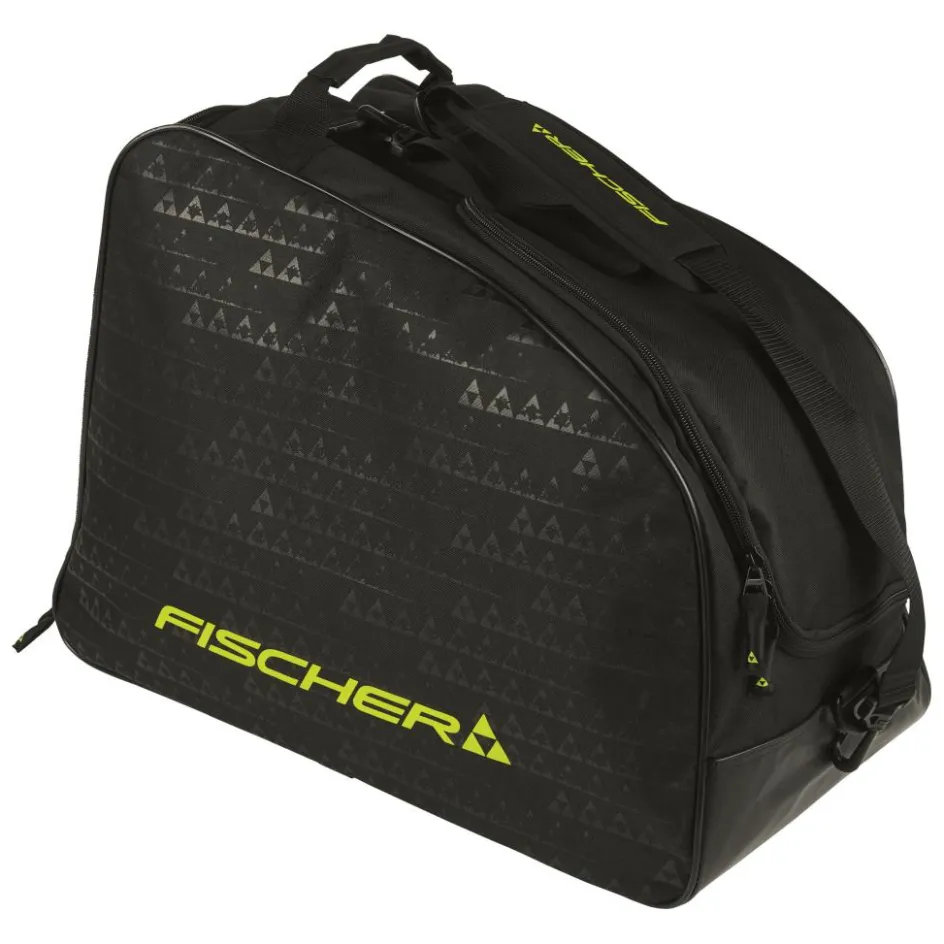 De Fischer Alpine Eco Helmet schoenentas biedt ruimte aan een paar skischoenen, een helm en skibril. Deze schoenentas van Fischer is gemaakt van gerecycled polyester, licht van gewicht en heeft een gewatteerde draagriem.