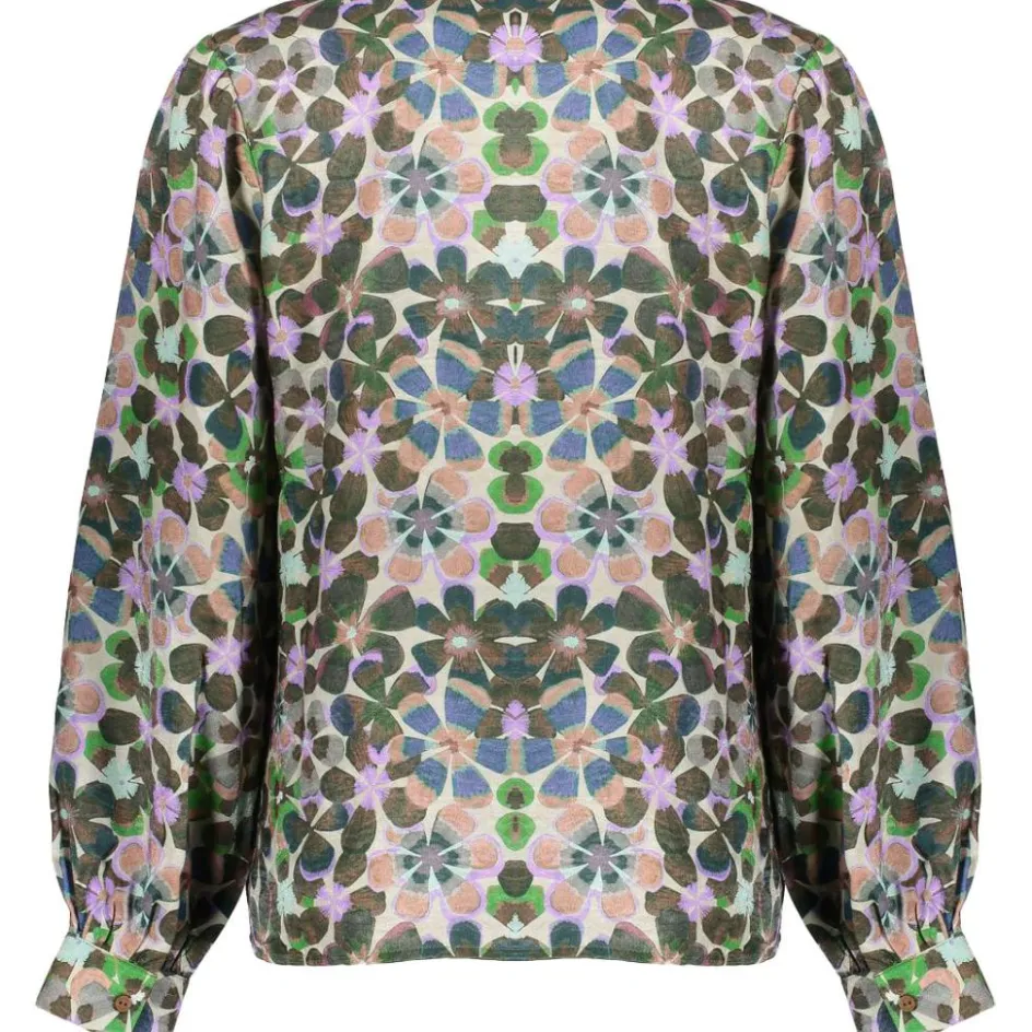 De Geisha blouse heeft een V-hals, ballonmouwen en een sierlijke print, waardoor dit item een unieke en stijlvolle toevoeging is voor uw outfit.