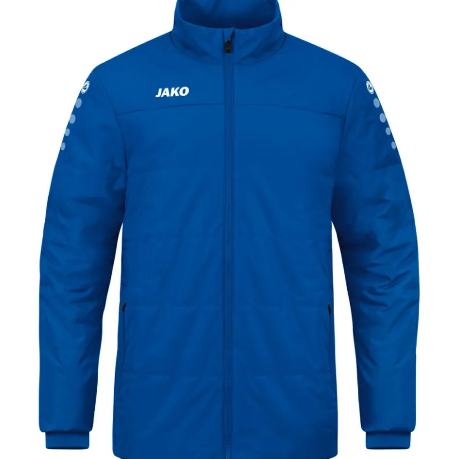 De Team Coachjas is ideaal om te dragen langs de lijn wanneer de temperaturen dalen. Het bovenmateriaal is waterafstotend.De thermische wattering en zachte fleece aan de binnenzijde biedt deze jas perfecte bescherming tegen de kou. Geïntegreerde Ripp-boorden in de mouwen, samen met het tunnelkoord en de stoppers aan de capuchon, voorkomen dat wind en regen binnendringen.