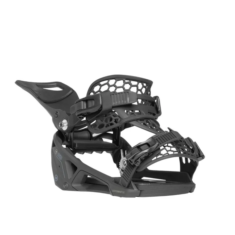 De Nidecker Supermatic bindingen zijn de eerste universele automatische bindingen met een dubbele ingang. Het fijne aan deze bindingen is dat elke snowboardschoen in de binding past. Zet de bindingen in de stand die uw voorkeur heeft en u hoeft voortaan geen moeite meer te doen om uw snowboard aan te trekken.
