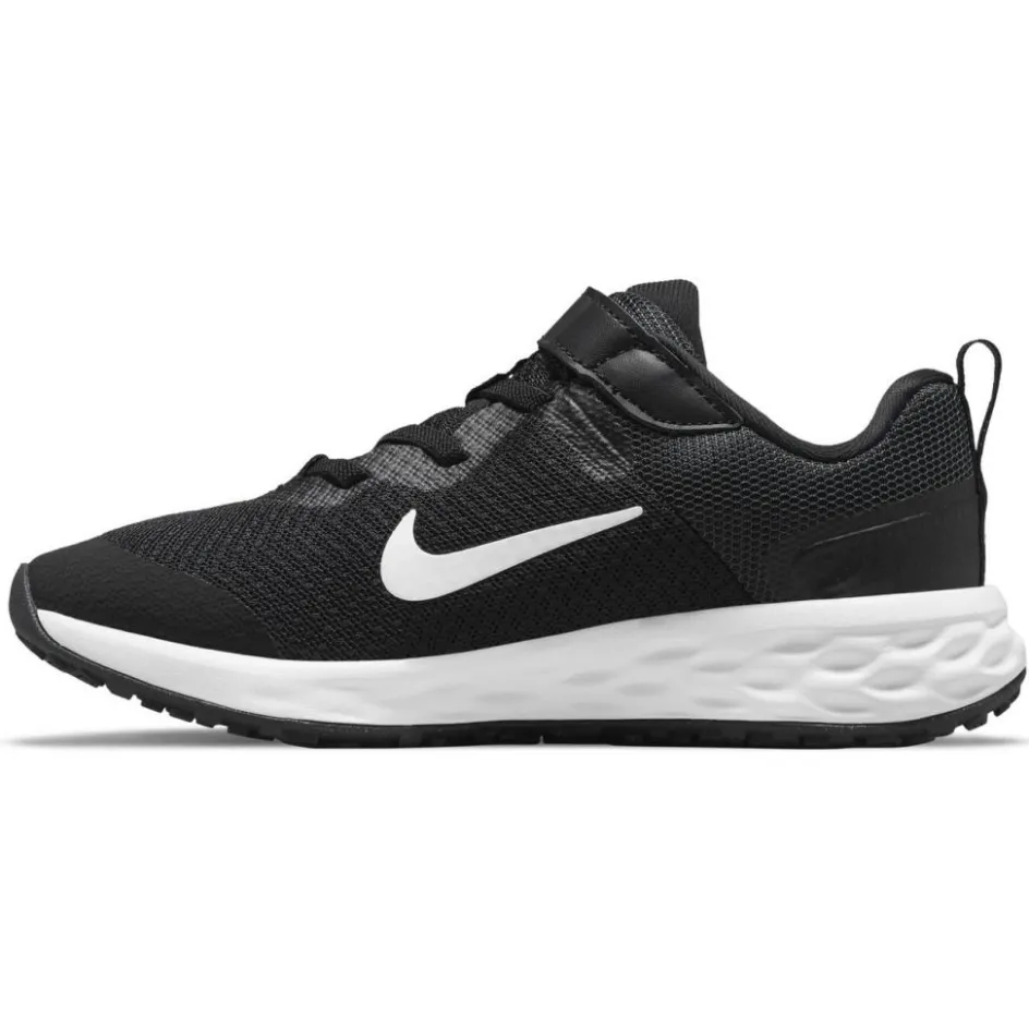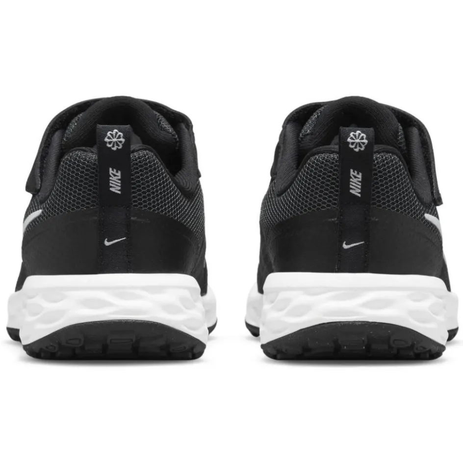 De Nike Revolution 6 schoenen voor kinderen zijn gemaakt van minstens 20% gerecycled materiaal. Deze casual schoenen hebben een klittenbandsluiting en elastische veters voor de perfecte pasvorm. Met deze schoenen loopt u de hele dag comfortabel door de dempende middenzool. De rubberen buitenzool zorgt voor goede grip en de inlegzool zorgt voor een aangename instap. De neus van de schoenen is extra verstevigd zodat deze langer meegaat.