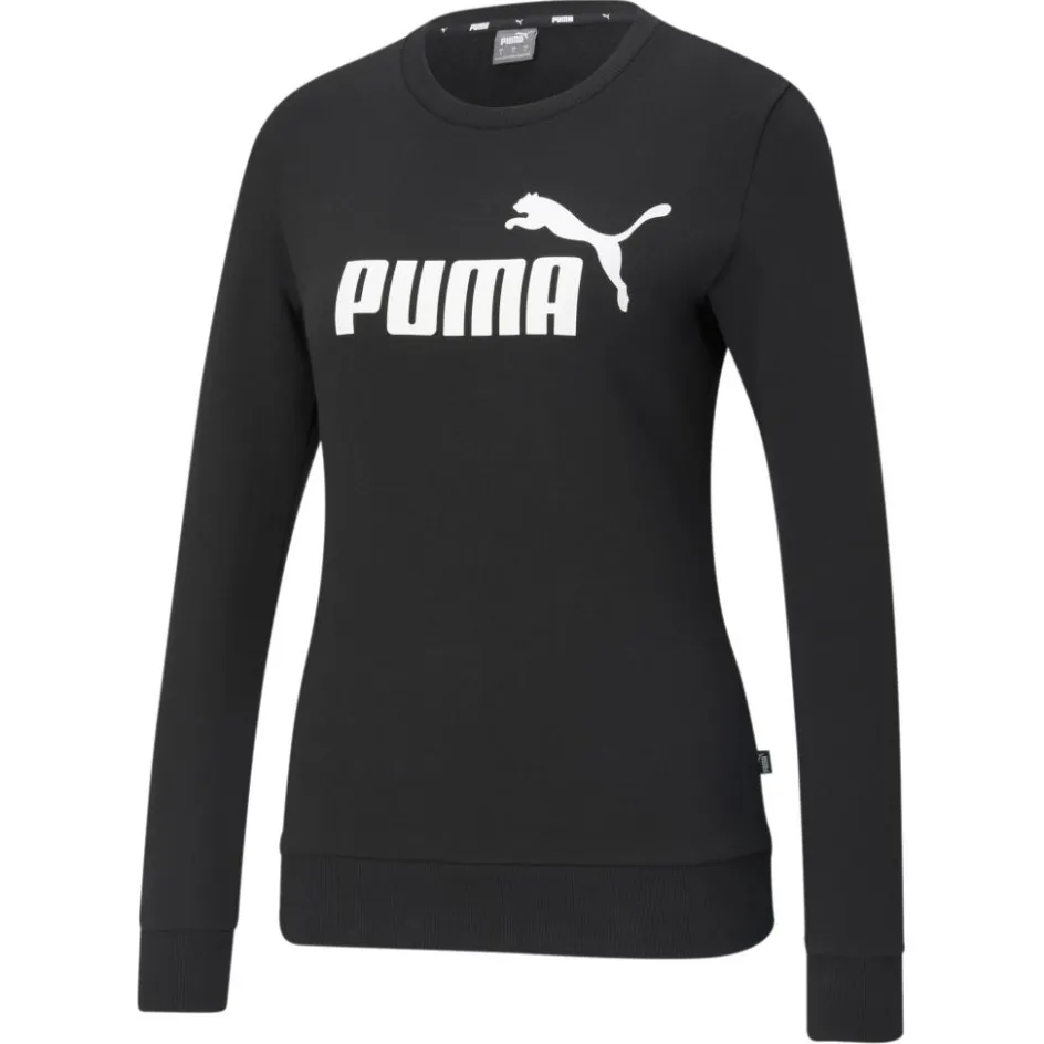 De Puma Essentials Logo Crew sweater voor dames heeft een aansluitende pasvorm. De ronde halslijn en de geribde zoom zorgen voor meer draagcomfort. De trui is gemaakt van katoen en van gerecycled polyester.