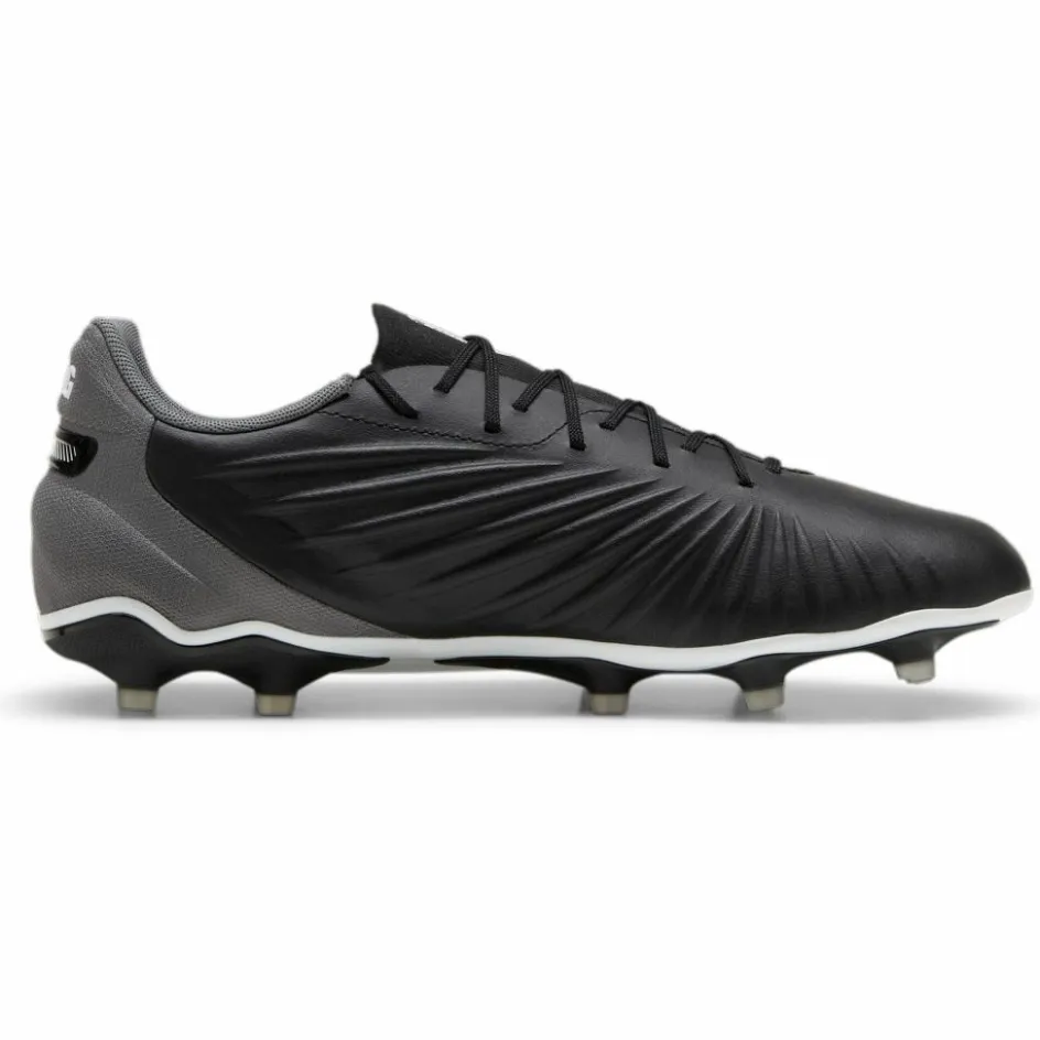 De PUMA KING MATCH FG AG voetbalschoenen voor heren hebben een laag uitgesneden instapmodel met een lichtgewicht bovenwerk die zacht aansluit rondom de voeten. De buitenzool is gemaakt van TPU met conische noppen die voor uitstekende grip zorgen op vaste als kunstmatige ondergronden.