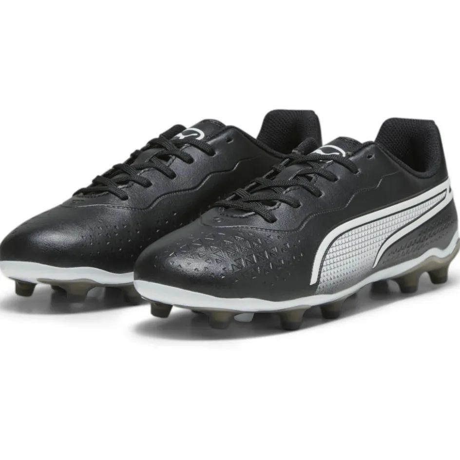 De Puma KING MATCH FG AG voetbalschoenen voor kinderen hebben een vetersluiting die voor een goede en comfortabele pasvorm zorgen. Deze stevige lichte schoenen hebben een TPU-buitenzool met stevige noppen die voor een goede grip zorgen. Zo zijn de schoenen geschikt voor graas en kunstgras ondergronden. Het zachte bovenwerk zorgt voor een fijn balgevoel en voor een goede controle.