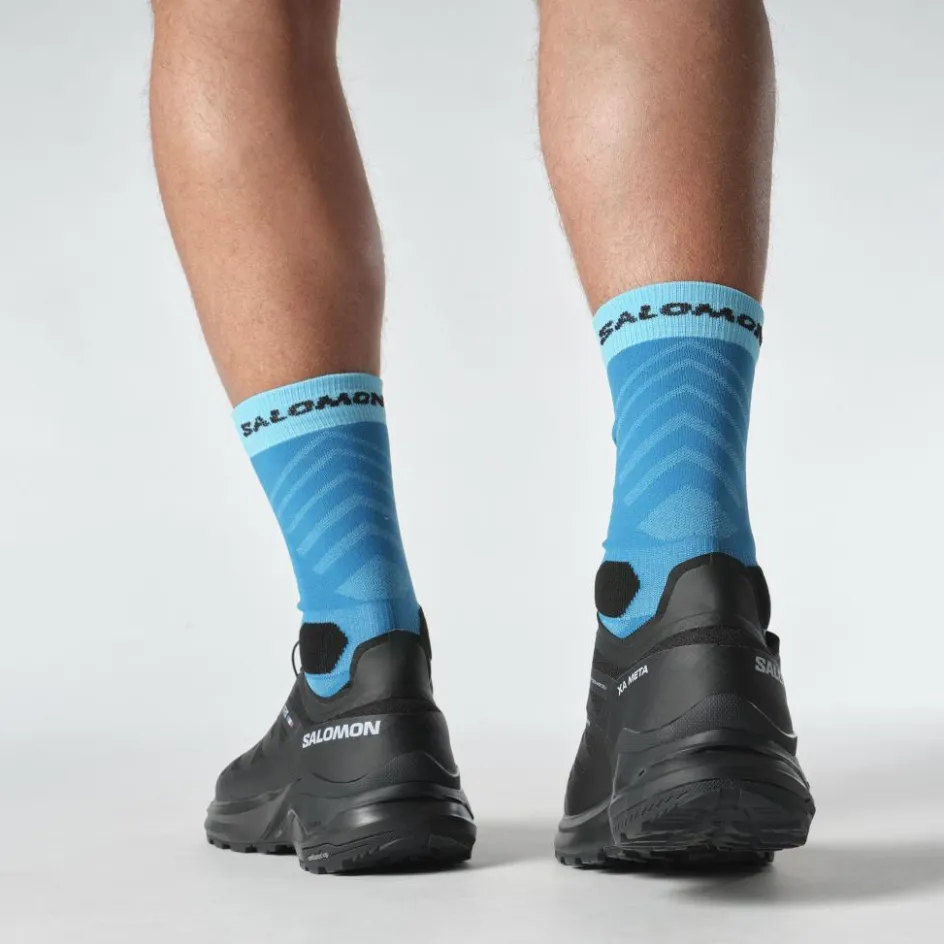 Met de XA META GORE-TEX hardloopschoenen van Salomon rent u comfortabel over iedere ondergrond. De rubberen zolen bieden namelijk grip in wisselend, rotsachtig gebied en geven een veilig gevoel op zowel natte als droge ondergronden. De tussenzool is gemaakt met de technologie EnergyCell, die ervoor zorgt dat de schoenen energie teruggeven tijdens uw stappen, maar tegelijkertijd ook demping bieden.