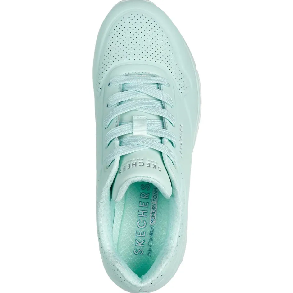De Skechers Uno – Stand On Air schoenen voor dames zijn stijlvolle en comfortabele sneakers met veel demping. Het lichte bovenwerk is gecombineerd met een Air Cooled Memory Foam binnenzool en een Skech-Air tussenzool voor extra demping.