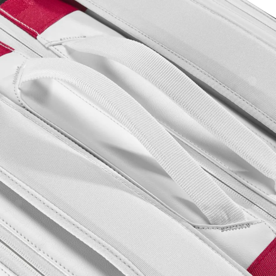 De Wilson Courage Collection 15 tennistas is geïnspireerd door de Olympische Spelen van 2024 in Parijs en Wilson’s 110-jarig jubileum. Deze tas biedt plaats aan maximaal 15 tennisrackets met drie ruime hoofdvakken. De tas is uitgerust met het Dual Carrying System, een geventileerd schoenenvak, Thermoguard racketvakken en twee ruime zijvakken met ritssluiting, voor extra functionaliteit en duurzaamheid. Het verstevigde materiaal garandeert extra lange levensduur.