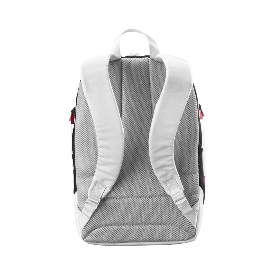 De Wilson Courage Collection Tennis Rugzak biedt 33 liter inhoud en heeft een Partial Racket Compartment voor maximaal twee tennisrackets. De rugzak beschikt over het Dual Carrying System, een geventileerd vak, een gewatteerd laptopvak en een Thermoguard accessoirevak met ritssluiting. Voor extra stabiliteit is er een aanpasbare riem die over de borst kan worden vastgeklikt. Deze rugzak combineert functionaliteit met duurzaamheid.