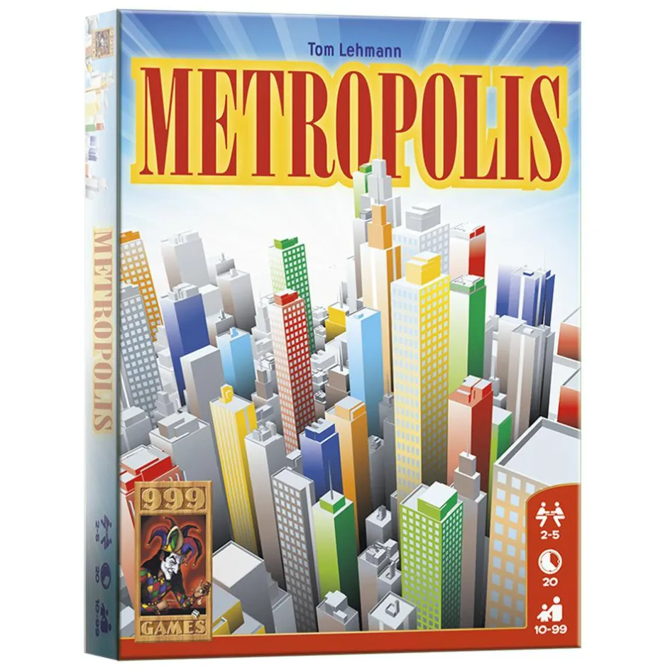 In het 999 Games Metropolis kaartspel bouwt elke speler een stad. Zo kan de speler elke ronde 1 gebouw bouwen en dit levert inkomsten op in de vorm van kaarten en/of munten. Sommige kaarten hebben invloed op elkaar en hierdoor kunnen er verschillende keuzemogelijkheden ontstaan. De speler met de meeste punten aan het einde van het spel, is de winnaar. Zo is het korte spel ideaal om te spelen voor als tussendoor. Het kan tot 5 spelers gespeeld worden.