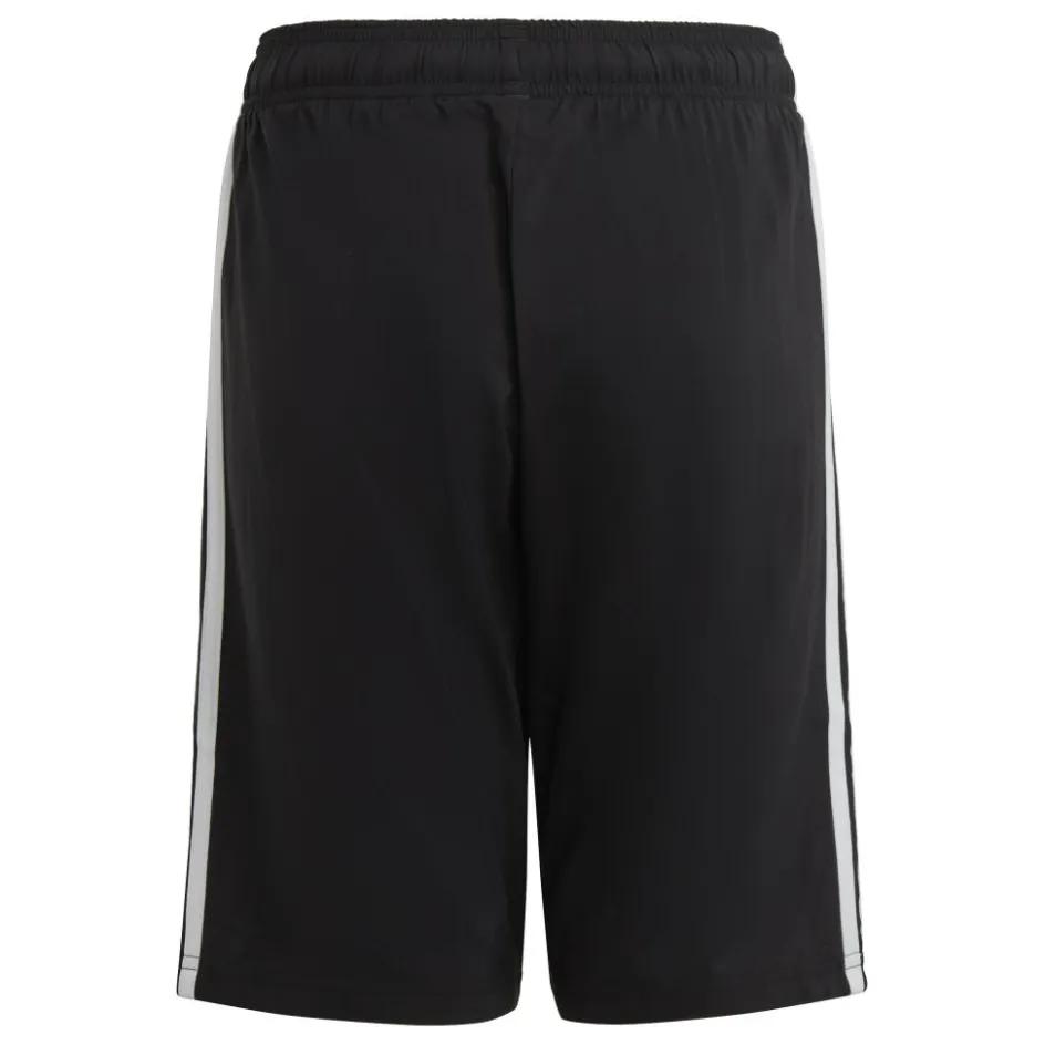 De adidas Essentials 3-Stripes Woven short voor kinderen zit comfortabel los langs het lichaam en sluit goed aan door de elastische tailleband. Deze short heeft zakken voor uw sleutels of telefoon en is gemaakt van gerecycled materiaal.