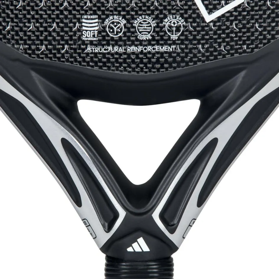 Het adidas Adipower Legend padel racket 2024 heeft een EVA Soft kern die voor een dempend gevoel zorgt bij elke slag. Het blad is gestructureerd, zodat u elke bal een spin effect kunt geven. De sweet spot zit hoog in het padel racket, zodat smash slagen met gemak gemaakt kunnen worden. De harde rand zorgt voor bescherming aan het racket en voorkomt krassen.