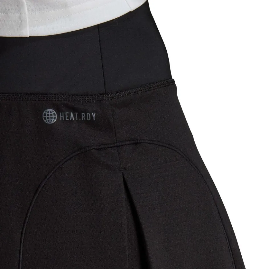Het adidas Match tennisrokje dames black heeft een slim fit pasvorm met een zachte brede hoge taille. De rok loopt aan de onderkant iets wijder uit, zodat het makkelijker is om er in te bewegen. De HEAT.RDY technologie zorgt dat je fris en droog blijft en de ingebouwde legging biedt zelfvertrouwen tijdens het spelen. Dit product is gemaakt van 100% gerecycled polyester.