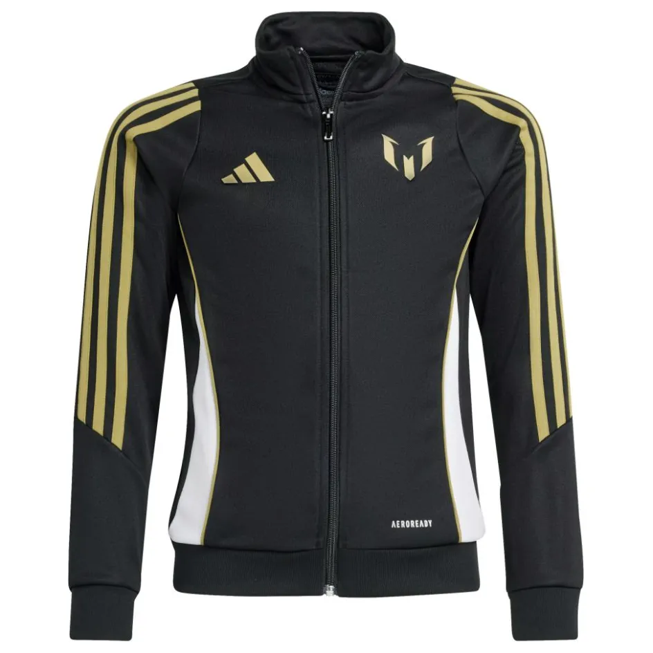 Het adidas Messi trainingsjack voor kinderen is gemaakt met vochtafvoerend AEROREADY waardoor deze een droog en comfortabel draaggevoel biedt. Dit jack is voorzien van een geribde zoom en boorden, en heeft handige voorzakken voor het opbergen van spullen. Met zijn klassieke adidas-uitstraling en het Messi-logo is uw kind verzekerd van een stoere voetbaloutfit.