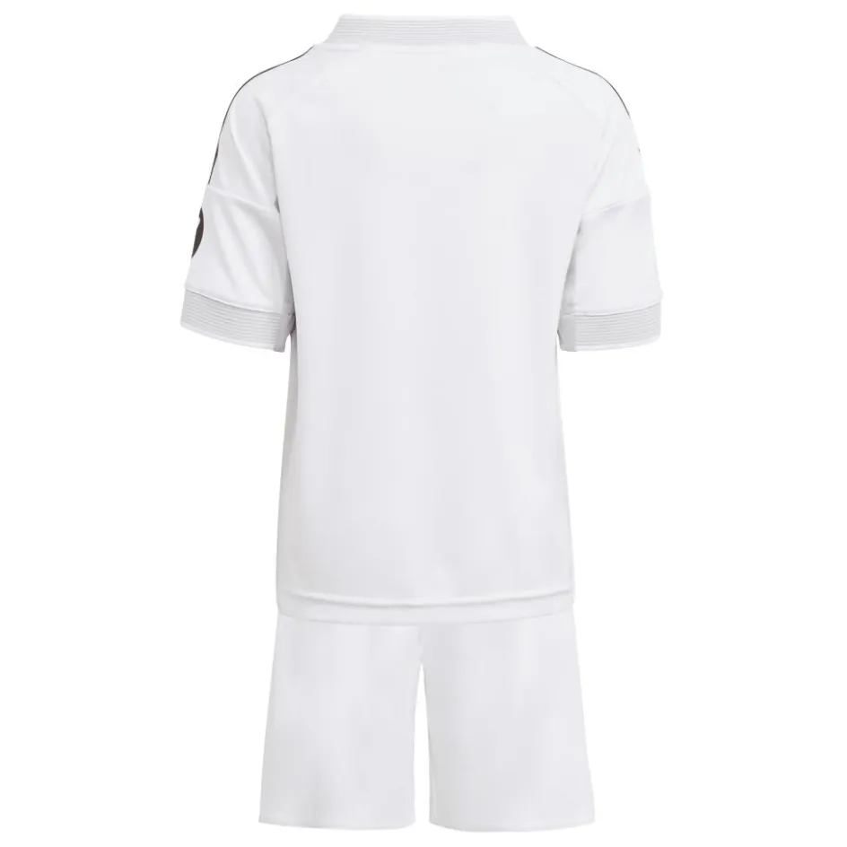 Het adidas Real Madrid thuistenue 25 – 26 is de perfecte set voor kinderen. Deze set bevat het thuisshirt, thuisbroekje en thuissokken. Het is een fijne set om mee te voetballen door de vochtregulerende AEROREADY technologie.