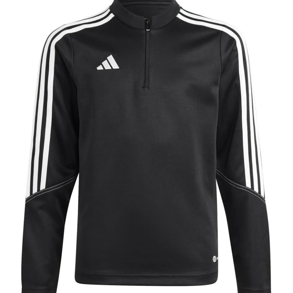 Het adidas Tiro 23 Club trainingsshirt voor kinderen heeft een geribbelde opstaande kraag. Zo kunt u zelf bepalen hoe warm u het wilt hebben tijdens de training. De trui houdt u goed warm op frisse trainingsochtenden, want de mouwen zijn voorzien van duimgaten. De stof is gemaakt met AEROREADY-technologie, waardoor de stof snel droogt.