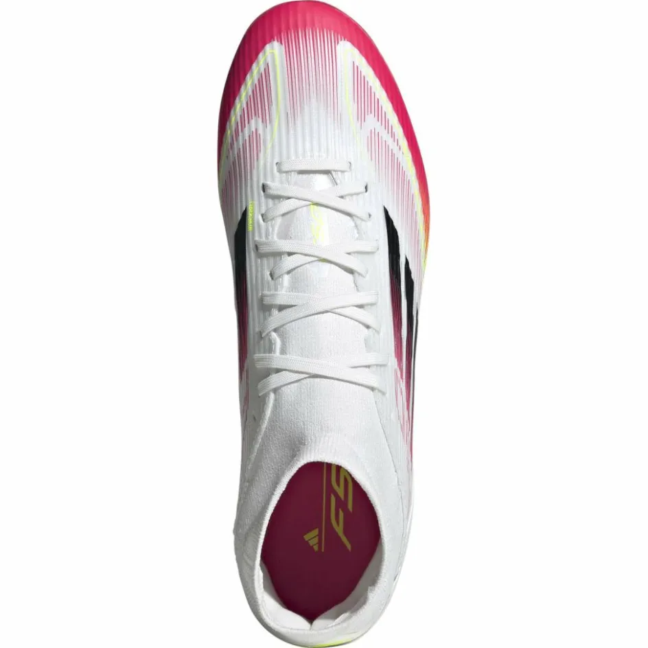 De adidas F50 League FG MG Mid voetbalschoenen zijn geschikt voor zowel natuurgras als kunstgras. Het Fiberskin bovenwerk heeft een halfhoge boord die ervoor zorgt dat de voeten goed omsloten worden door de schoenen.