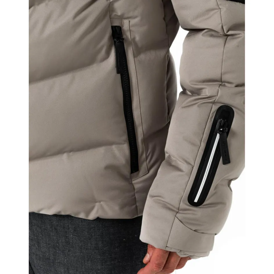 De Falcon Alessandro winterjas is ontworpen met een sneeuwvanger, waardoor er geen koude sneeuw binnen de jas kan dringen. Op de mouw zit een skipashouder, zodat deze altijd binnen handbereik is. De afneembare capuchon is aanpasbaar, zodat u de stijl van de jas kunt aanpassen aan de weersomstandigheden.