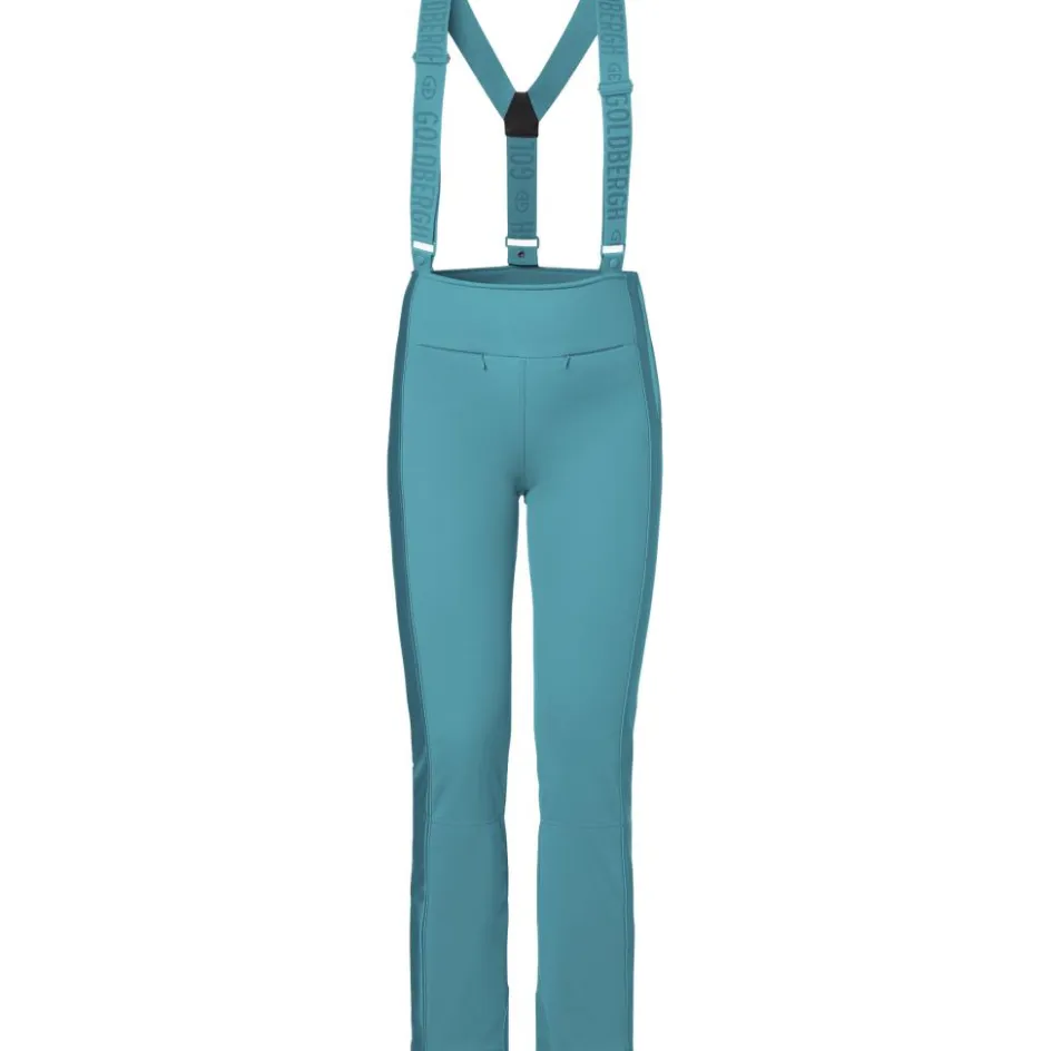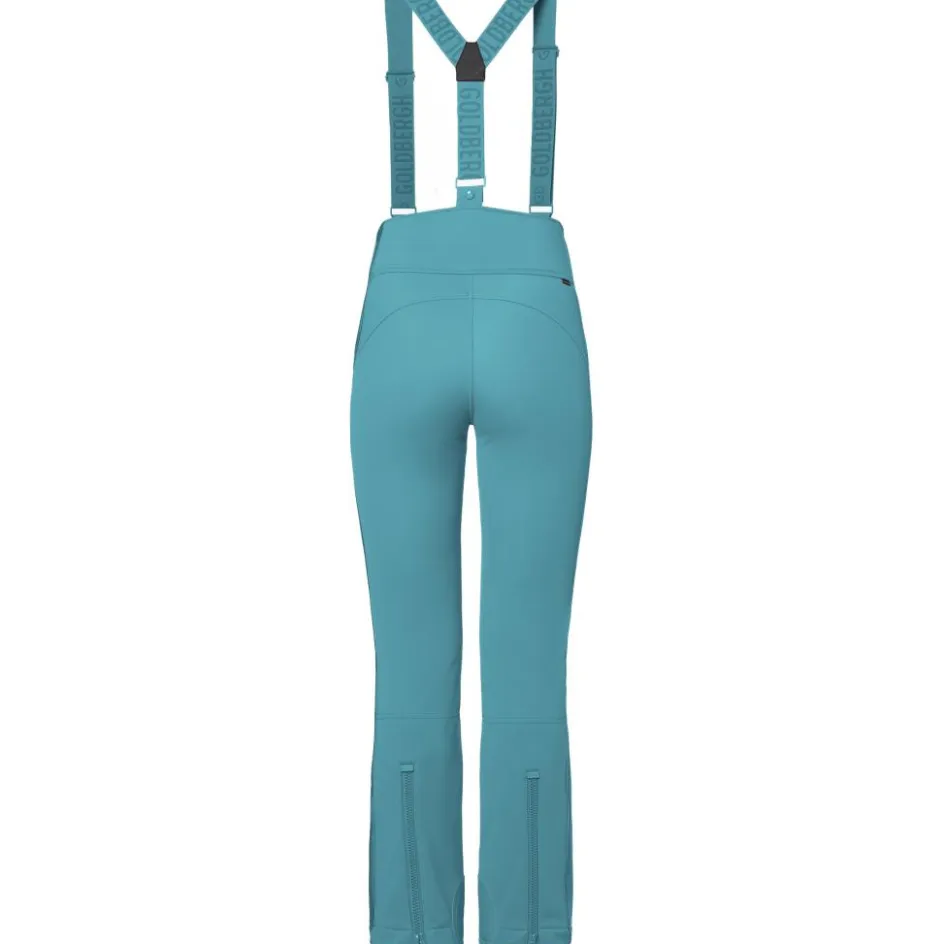 De Goldbergh HIGH END softshell salopette skibroek heeft afneembare bretels, waardoor de broek goed blijft zitten. De sneeuwvangers aan de onderkant houden de sneeuw buiten de broek en dankzij het rekbare materiaal hoeft u niet in te leveren op bewegingsvrijheid. De waterdichte buitenlaag beschermt u tegen de regen en sneeuw en het ademende materiaal zorgt voor een fris en comfortabel gevoel.