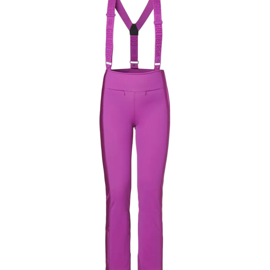 De Goldbergh HIGH END softshell salopette skibroek is voorzien van sneeuwvangers bij de broekspijpen, zodat er geen koude sneeuw de broek binnen kan dringen. De bretels zijn afneembaar en ideaal om de skibroek goed op zijn plek te houden. Het rekbare materiaal zorgt voor optimale bewegingsvrijheid en het waterdichte materiaal biedt bescherming tegen de regen en sneeuw.