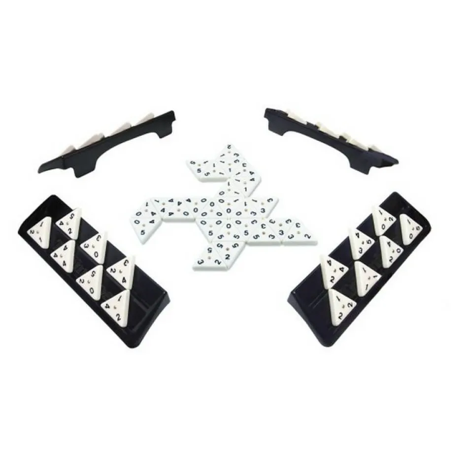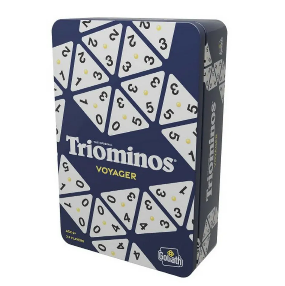 Dit Goliath Triominos Voyager strategiespel is een handige reisversie van het originele Triominos spel, ideaal om mee te nemen en te spelen op vakantie. In dit tactische spel probeert u met driehoekige, genummerde stenen zoveel mogelijk punten te scoren. Leg uw stenen slim aan alle kanten van de stenen die al op tafel liggen en vergroot zo uw kansen. Het spel begint met een willekeurige steen waarvan u direct de waarde scoort. Door bijzondere figuren te vormen kunt u extra punten verdienen. Het spel wordt gespeeld met 56 stenen en vier plankjes. Wie aan het einde de meeste punten heeft wint!