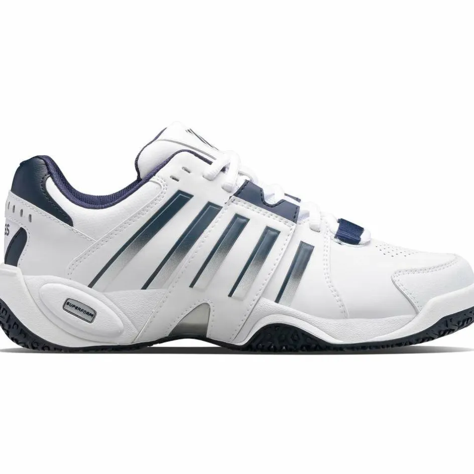 De K-Swiss Accomplish IV Omni tennisschoenen zijn ideaal om uw spelniveau naar een hoger niveau te brengen. De schoenen bieden comfort en stabiliteit op het veld en de ademende upper zal voor een goede luchtcirculatie zorgen. Verder heeft de schoen vetersluiting en is afgewerkt met K-Swiss branding voor een sportieve uitstraling.