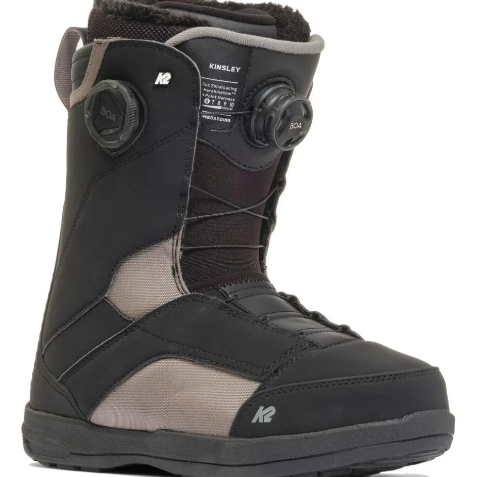 De K2 Kinsley snowboardschoenen voor dames hebben een dempende en stabiele rubberen buitenzool en een verzachtende binnenzool van Harshmellow. Deze K2 snowboardschoenen zorgen dankzij de anatomisch vormende Intuition Control 3D foam en vocht-absorberende mesh voering voor ultiem draagcomfort. Daarnaast hebben deze snowboardschoenen een dubbele BOA sluiting.