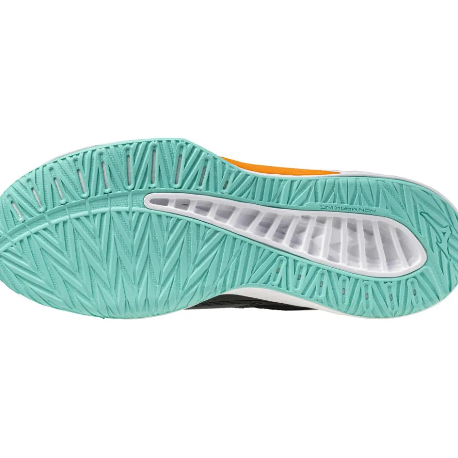 De Mizuno Thunder Blade Z indoorschoenen zijn gemaakt met EVA tussenzolen, waardoor stappen gedempt worden en zacht aanvoelen. De voorkant is iets breder en verstevigd, zodat er meer stabiliteit wordt ervaren. De rubberen buitenzolen bieden grip en geven niet af en dankzij de zachte, uitneembare inlegzool kan de pasvorm naar wens worden aangepast.