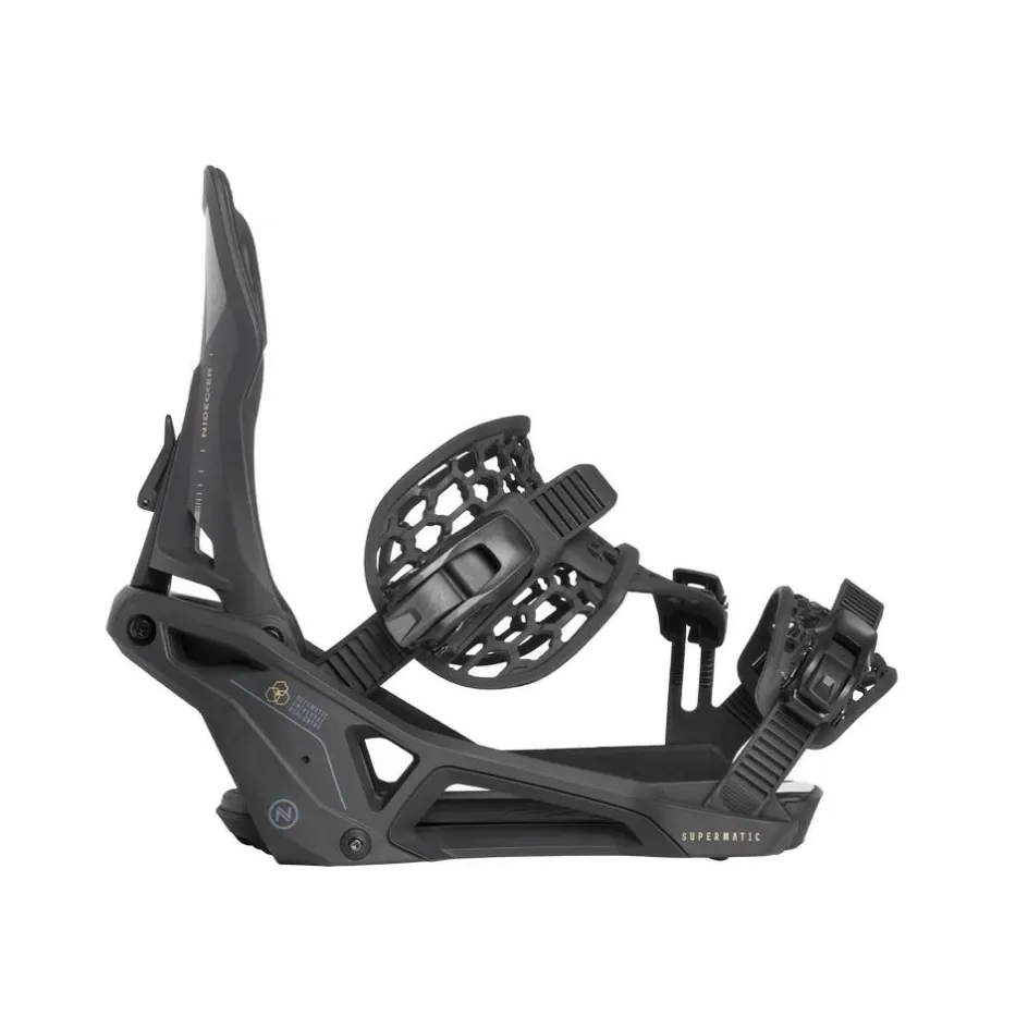 De Nidecker Supermatic bindingen zijn de eerste universele automatische bindingen met een dubbele ingang. Het fijne aan deze bindingen is dat elke snowboardschoen in de binding past. Zet de bindingen in de stand die uw voorkeur heeft en u hoeft voortaan geen moeite meer te doen om uw snowboard aan te trekken.