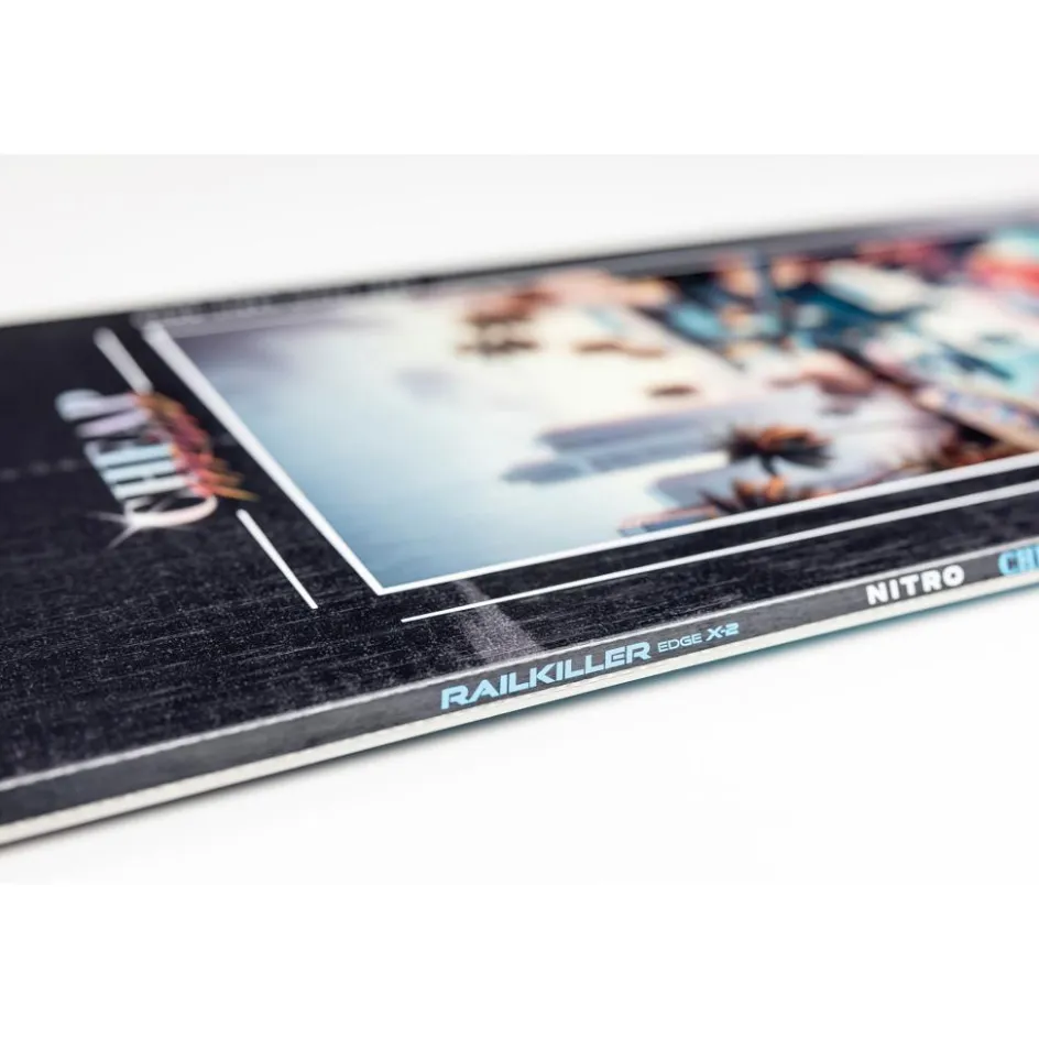 Dit Nitro Cheap Thrills 25 – 26 snowboard is voor de snowboarders die veel jumpen en tricks doen op de rails. Het snowboard heeft een identieke tip- en tailvorm voor een meer freestyle snowboardstijl. Daarnaast zijn bochten en soepele manoeuvres maken makkelijk door het Flat-Out Rocker profiel.