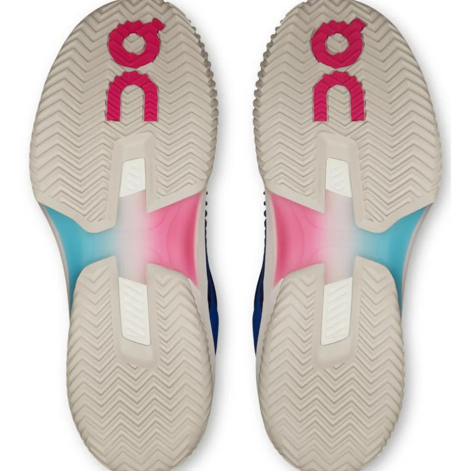 De On THE ROGER Pro Fire Clay tennisschoenen hebben diepe groeven in de zolen, waardoor er meer grip ontstaat en kleiophoping wordt voorkomen. Het Speedboard biedt ondersteuning en is tegelijkertijd flexibel, zodat u snelle, zijwaartse wendingen kunt maken. De veters zijn ontworpen op de middenvoet, voor een stevige en veilige pasvorm.