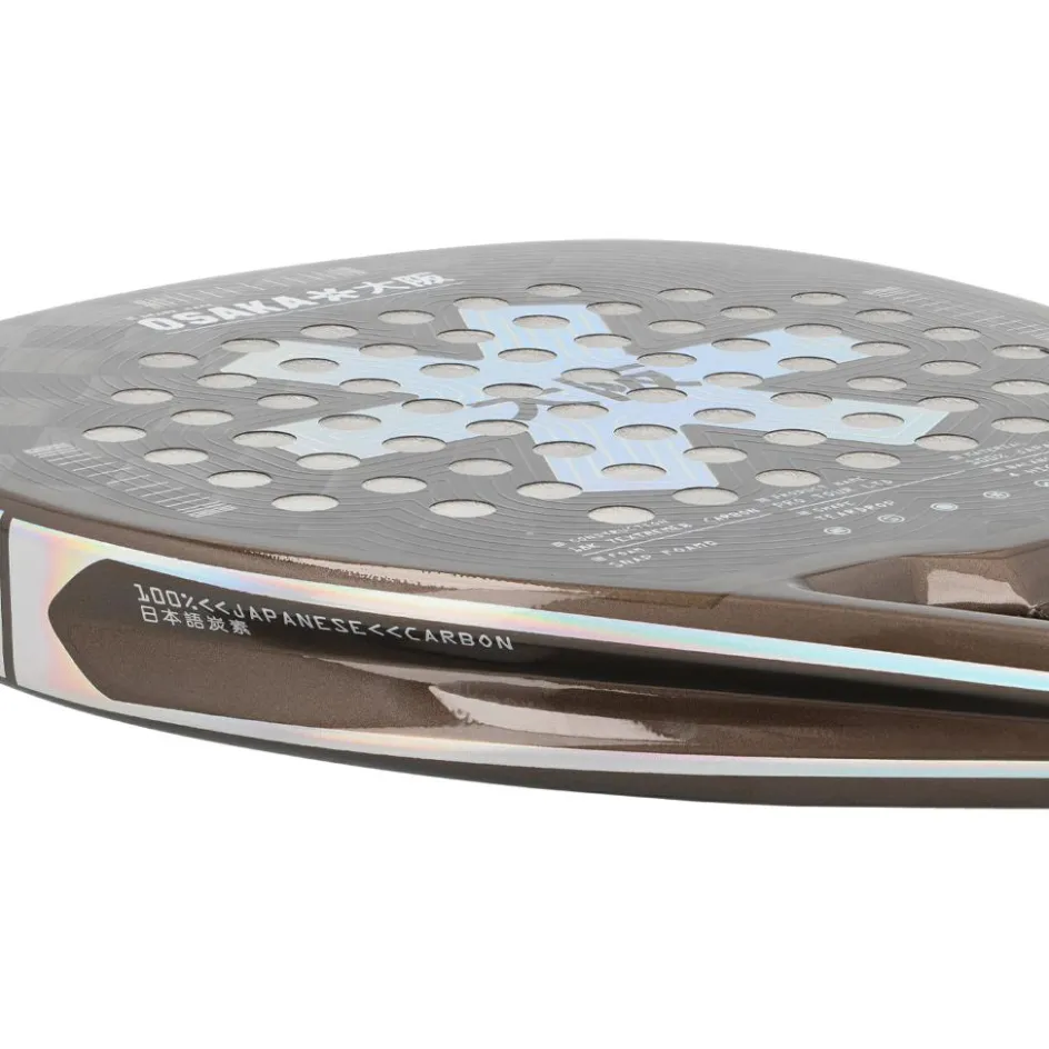Het druppelvormige Osaka Pro Tour LTD Power padel racket heeft 68 gaten met een grove textuur op het blad, zodat u de ultieme spinballen kunt maken. Door het stevige materiaal en de lichte materialen ervaart u veel wendbaarheid en heeft u meer controle. Verder heeft het padel racket een ideale balans tussen stijfheid en flexibiliteit.
