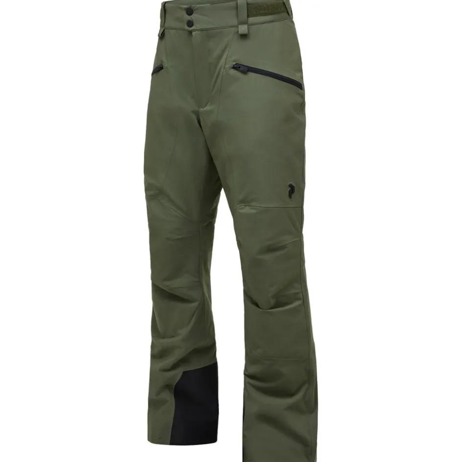De Navtech 2L skibroek van Peak Performance houdt de sneeuw buiten, dankzij de sneeuwvanger. De fitting is smal en er wordt aangeraden om een maatje groter te pakken voor een normale pasvorm. De taille is smaller te maken en de zakken hebben ritsen.