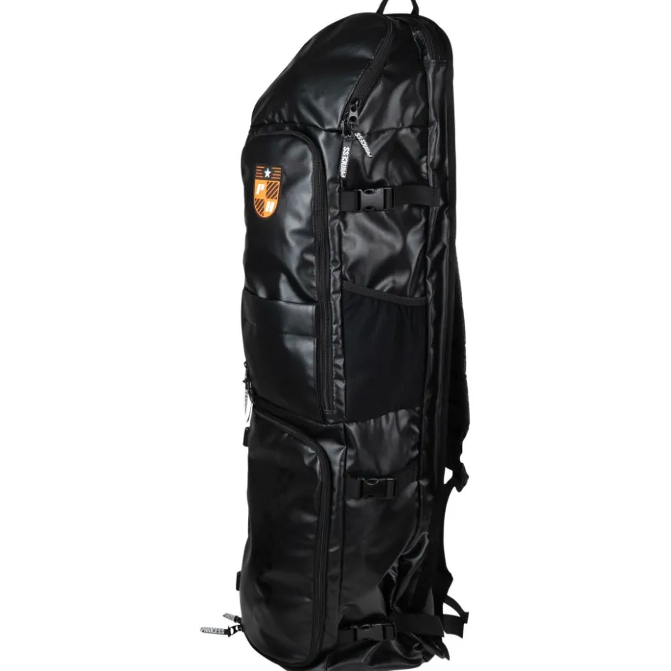 De Princess Hockey Premium 5 sticks hockeytas is gemaakt van tarpaulin, waardoor de tas zowel duurzaam als waterdicht is. De gewatteerde en verstelbare schouderbanden zorgen voor een hoog draagcomfort. Daarnaast biedt de hockeytas van Princess volop ruimte: er passen vijf sticks in en er is een groot vak voor uw schoenen en kleding.