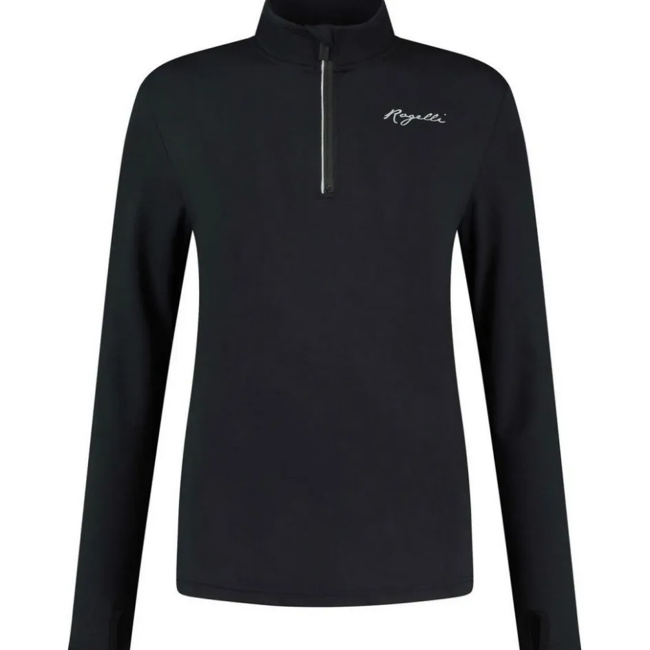 Het Rogelli Core hardloopshirt voor dames heeft een semi-hoge kraag met ritssluiting en reflecterende accenten voor extra zichtbaarheid tijdens het hardlopen in het donker. De mouwen zijn voorzien van duimgaten voor extra warmte en op de linkerborstzijde is het Rogelli logo geplaatst voor wat extra dosis flair.