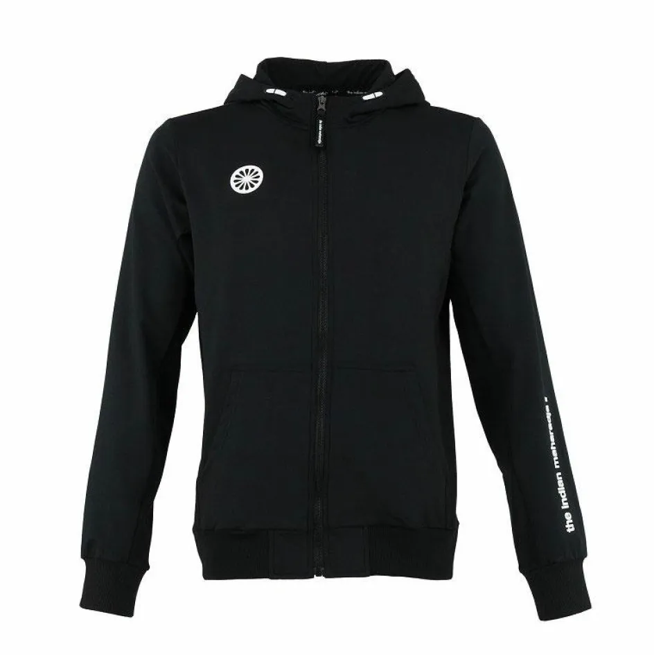 The Indian Maharadja Hooded trainingsjack Kadiri heeft een aansluitende pasvorm. Door het gebruik van ribmateriaal in de zijpanelen en mouwen heeft u extra bewegingsruimte. Het rubberprint logo op de rand van de capuchon maakt dit jack helemaal af.